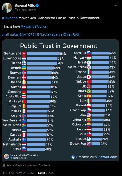 #Rwanda ranked 4th Globally for Public Trust in Government