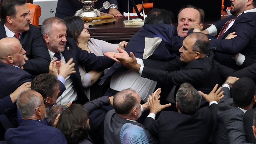 L’incident est survenu alors que des élus du CHP tentaient d’empêcher la prise de fonction de M. Gurlek. Selon des images diffusées par plusieurs médias, la confrontation a rapidement dégénéré, certains députés échangeant coups de poing et coups de pied sur le plancher de l’assemblée. Lors de l’altercation, un parlementaire de l’AKP aurait fracturé le nez d’un élu du CHP.