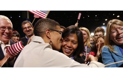 Pari gagné. Il est réélu en novembre 2012 et, pour la première fois, les pro-mariages emportent les quatre référendums sur la question du same-sex marriage. On estime même que les trois quarts des 5% d’électeurs se déclarant « homosexuels » ont voté pour Obama. Avec le vote latino et celui des femmes, le vote gay a contribué de manière significative, comme l’affirmeront The Economist et le New York Times, à la victoire du président. « La réélection de Barack Obama a été le signal que l’hégémonie du mâle blanc hétérosexuel a pris fin en Amérique », a commenté pour sa part Paul West, journaliste au Los Angeles Times.