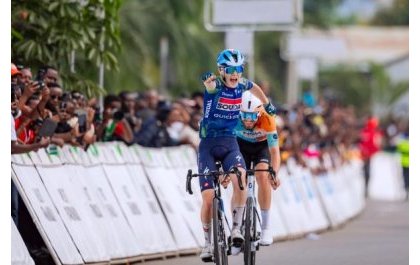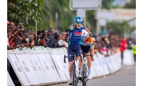 Arrivé à égalité avec l’Allemand Moritz Kretschy après 3h05’55”, De Clercq a été déclaré vainqueur, ayant franchi en premier la ligne d’arrivée lors d’un sprint haletant au marché de Rubavu.